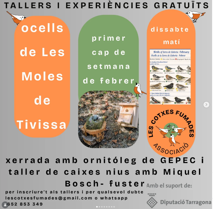 Experiència d'ornitologia lúdica-educativa a la Mola d'en Beset espai regeneratiu gestionat per la millora de la biodiversitat. Descobreix els ocells de la finca i ajuda a crear caixes nius.