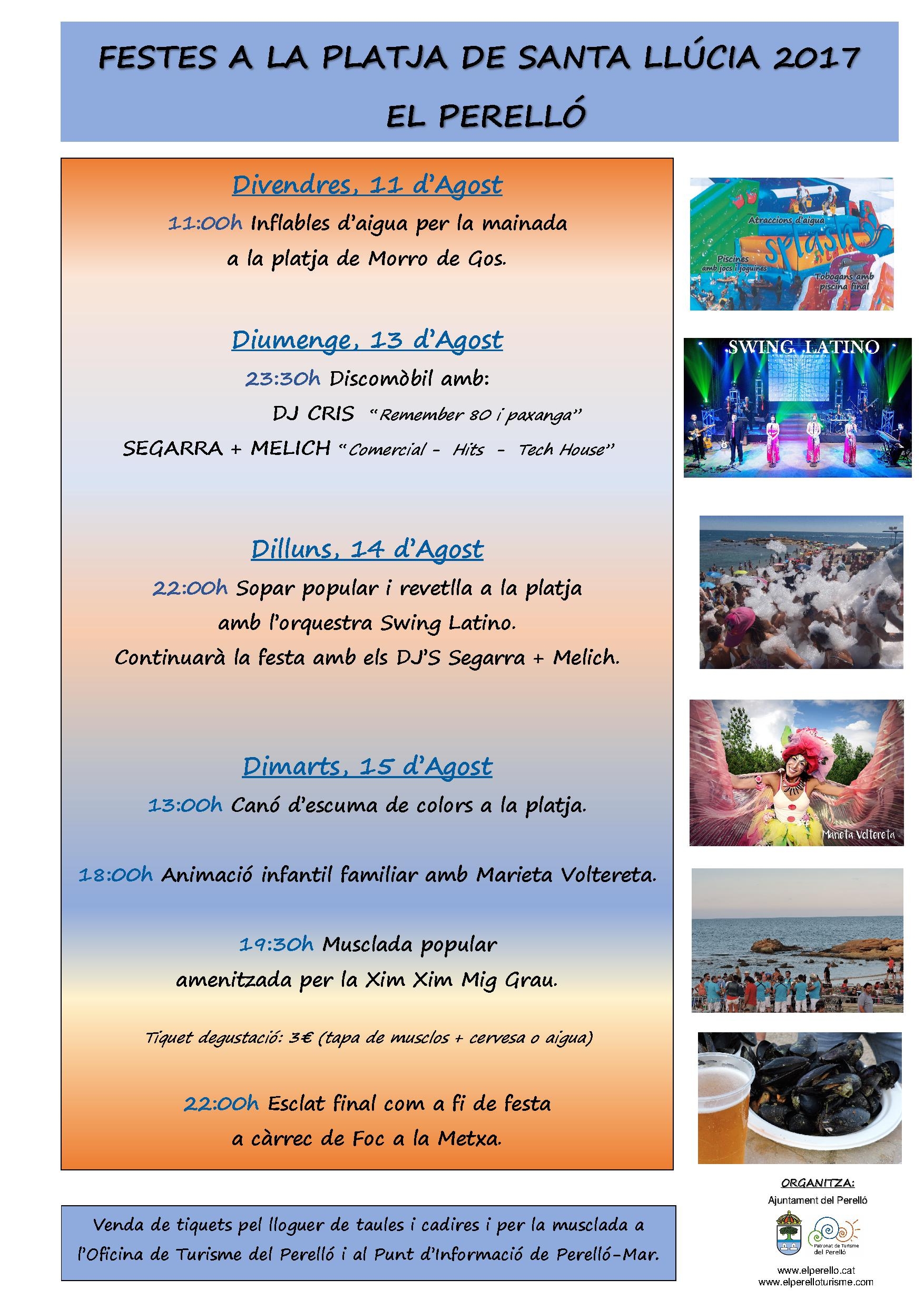 Inflables d'aigua pels més petits, sopar popular, música, musclada popular i moltes activitats més!
