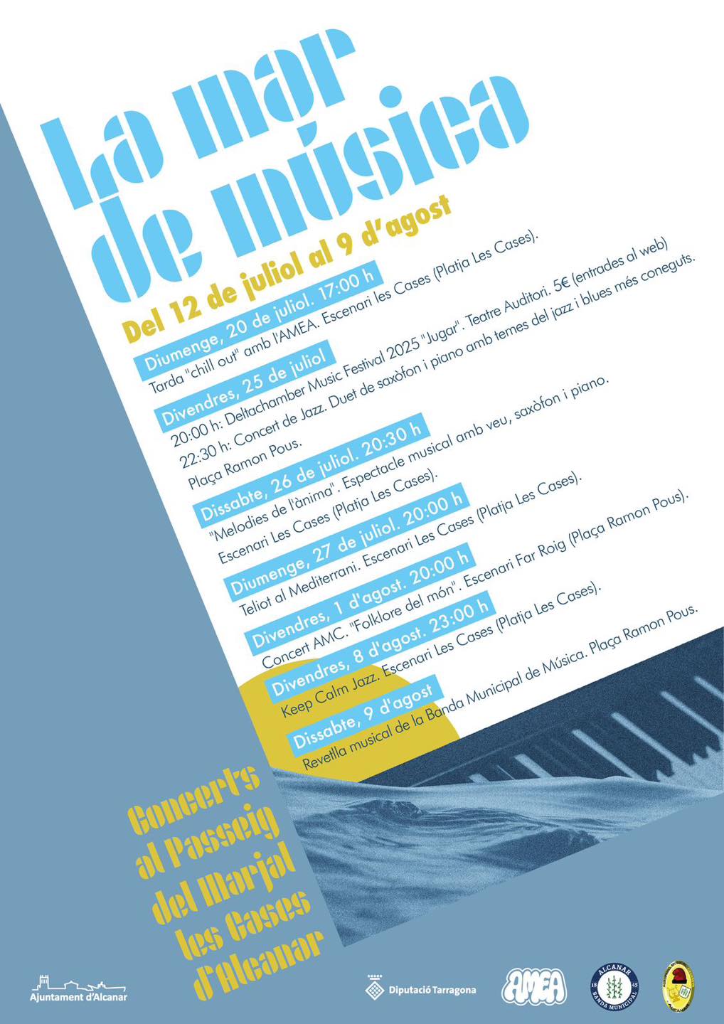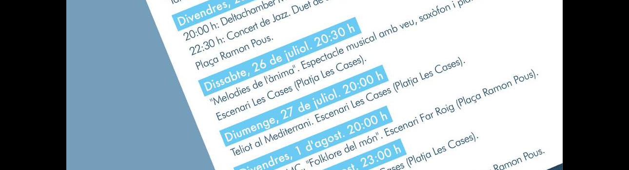 Divendes 25 de juliol: 20:00 h Deltachamber Music Festival 2025 ‘Jugar’ - 22:30 h Concert de Jazz. Duet de saxòfon i piano amb temes de jazz i blues
