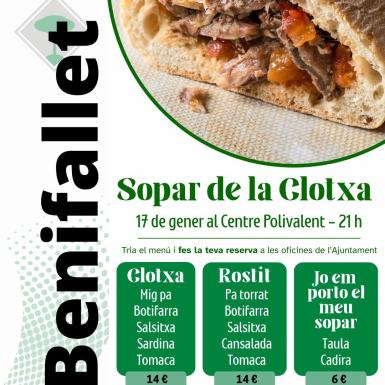 El sábado día 17 de enero a las 21:00 se celebrará la Fiesta de la Clotxa en Benifallet.