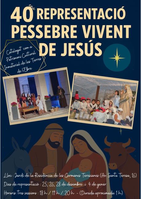Dentro de las actividades de Navidad a Jesús, podrá disfrutar del tradicional pesebre viviente. Los actores voluntarios realizan una de las más antiguas representaciones, y no sólo como figuras sino que nos aportan diálogos, escenas, incluso cantos. Es una experiencia inolvidable, apta para todos los públicos y con un gran soporte visual del paisaje. ¡No se lo pierdan! Catalogado como patrimonio Cultura Inmaterial de las Terres de l'Ebre.
