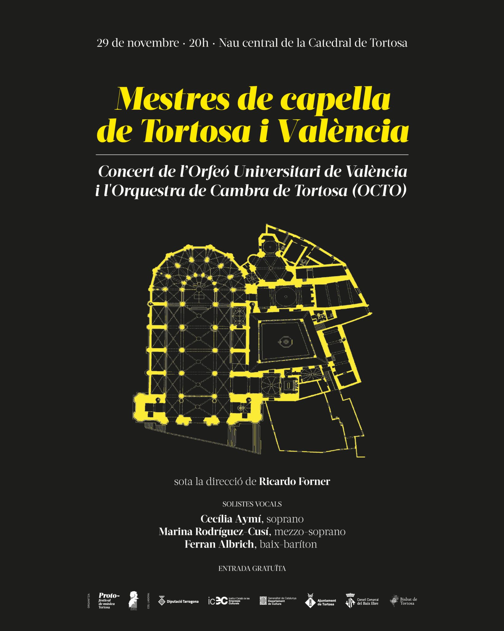 Este sábado, 29 de noviembre, la majestuosidad de la Catedral de Tortosa se convertirá en el escenario de un concierto excepcional y gratuito dentro del Proto-fest. Participarán el Orfeón Universitario de Valencia y la Orquesta de Cámara de Tortosa, ofreciendo una velada musical única.