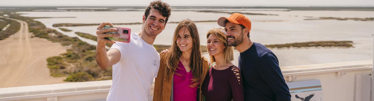 Visita que permite descubrir los diferentes espacios del centro para entender y disfrutar de la magia del Delta: La recreación de las Salinas, el gran montaje audiovisual del Espacio del Delta, la visita panorámica desde el Mirador 360, navegación con las barcas de perchar ...