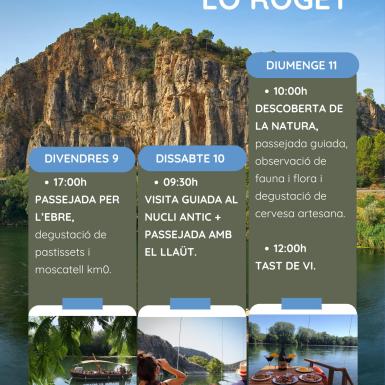 Navegaremos por el río Ebro con el Llaüt Lo Roget, atravesaremos uno de los parajes fluviales más espectaculares de la Ribera d'Ebre, el Pas de l'Ase. En este pequeño desfiladero el Ebro se abre paso entre montañas dejando unos paisajes vírgenes de gran belleza.