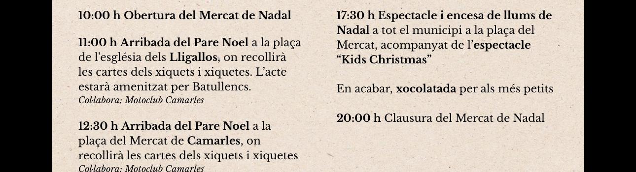 Torna el Mercat de Nadal a Camarles! El 8 de desembre a la plaça del Mercat trobareu activitat per a tota la família, música, llums i molta màgia!
